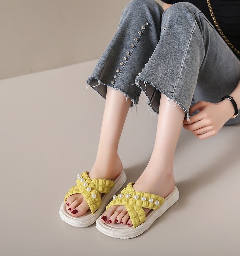 トレンド感溢れるデザインに、可愛らしいパールがアクセントを効かせたビーチサンダル登場!このサンダルがあれば、一歩先を行くおしゃれコーデが完成します。柔らかな履き心地や美脚効果も嬉しいポイント。どんなシーンでも存在感を放ち、周りと差をつける主役級のアイテムです。春夏のおしゃれを存分に楽しみたいなら、是非お手元に。華やかな輝きであなたのステップに上品な輝きを添えます。