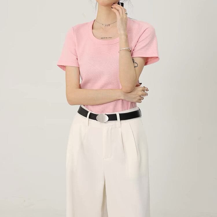 レディース トップス カットソー インナー Tシャツ 半袖 Uネック ラウンドネック スリム 細身 ストレート リブ 伸縮性 リブニット かわいい 大人可愛い きれいめ シンプル カジュアル 上品 おしゃれ こなれ感 ラフ キュート ベーシック ナチュラル 無地 春 夏 秋 ママ オフィス OL 通勤 学生 学校 通学 デート お出かけ 公園 女子会 休日 ショッピング 重ね着 韓国 コーデ 楽ちん 普段使い 着回し レイヤード 定番 サイズ S M L ブルー 水色 アプリコット ブラック 黒 ピンク
