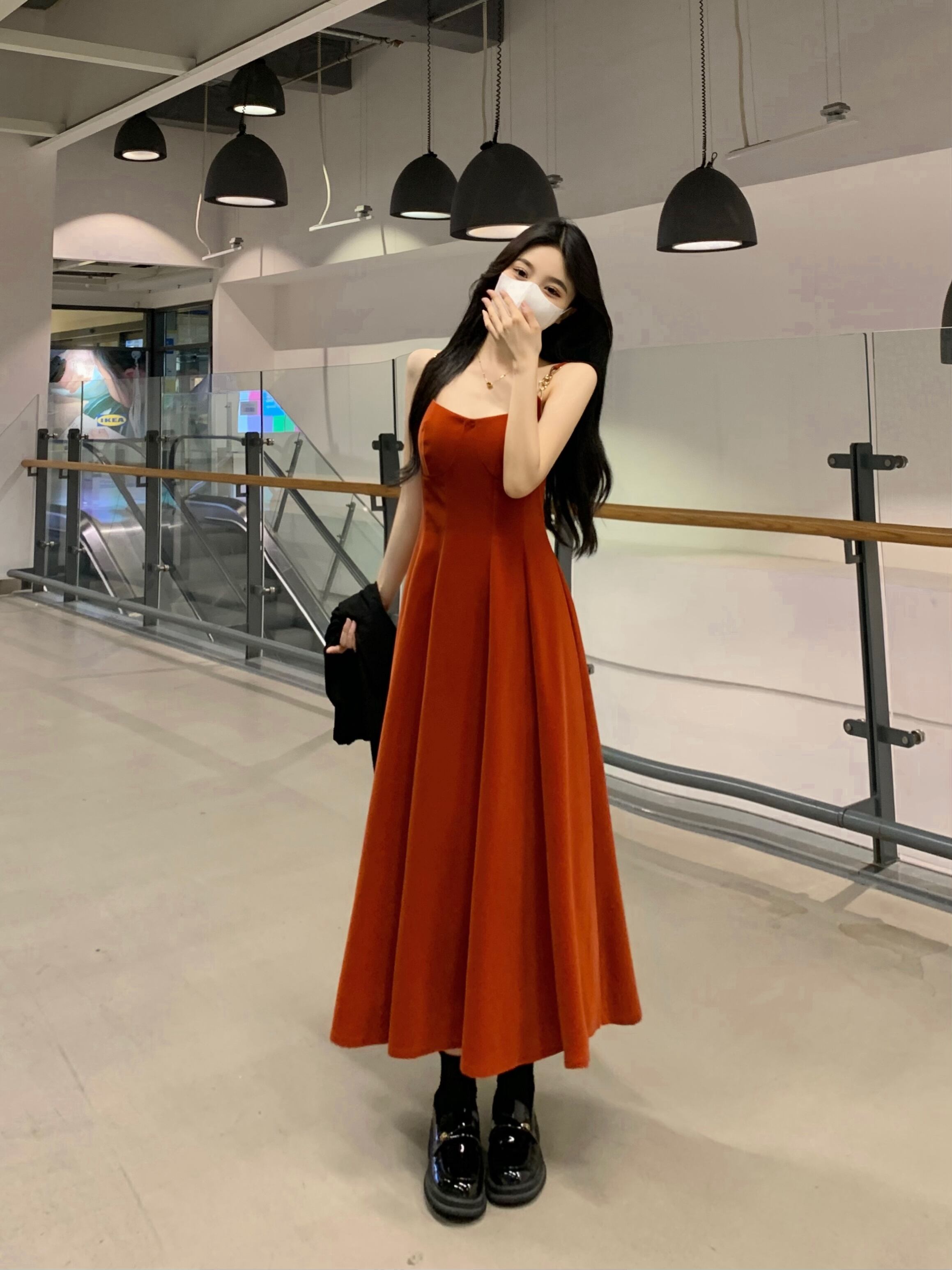 レディース トップス ワンピース 2点セット セットアップ 長袖Tシャツ キャミソールワンピ ロング 長袖 スタンドカラー Aライン ハイウエスト かわいい 大人可愛い きれいめ シンプル カジュアル 上品 おしゃれ ガーリー 無地 春 夏 秋 デート お出かけ 休日 コーデ 楽ちん 体型カバー 着回し モテ 定番 S M L XL 2XL オレンジ