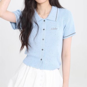 レディース トップス シャツ ポロシャツ ショート 半袖 Vネック 襟付き ポロカラー タイト スリム 細身 スマート フェミニン 刺繍 リブ 伸縮性 ボタン ライン かわいい 大人可愛い きれいめ シンプル カジュアル 上品 おしゃれ レトロ こなれ感 ラフ ガーリー カレッジ風 学生風 無地 ロゴ 春 夏 母の日 学生 学校 通学 デート お出かけ 公園 女子会 休日 ショッピング お花見 カフェ 韓国 オルチャン コーデ 普段使い 着回し 清楚 サイズ S M グレー ライトグレー 水色 ブルー