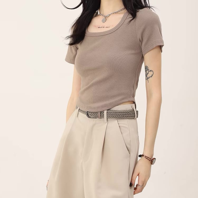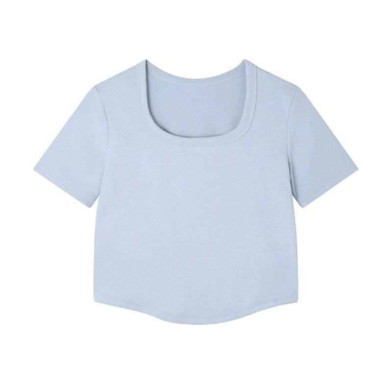 レディース トップス Tシャツ ショート クロップド丈 半袖 ラウンドネック タイト スリム 細身 リブ フェミニン ストリート ラウンドヘム 無地 春 夏 学生 学校 通学 デート お出かけ アウトドア リゾート 海 プール ビーチ ジム 公園 女子会 休日 ショッピング コンサート ライブ カフェ フェス 重ね着 韓国 オルチャン コーデ 脚長 普段使い 着回し レイヤード トレンド 流行 サイズ S M L 白 カラー ホワイト 黒 ブラック 茶色 ブラウン モカ 水色 ブルー アプリコット 淡い色