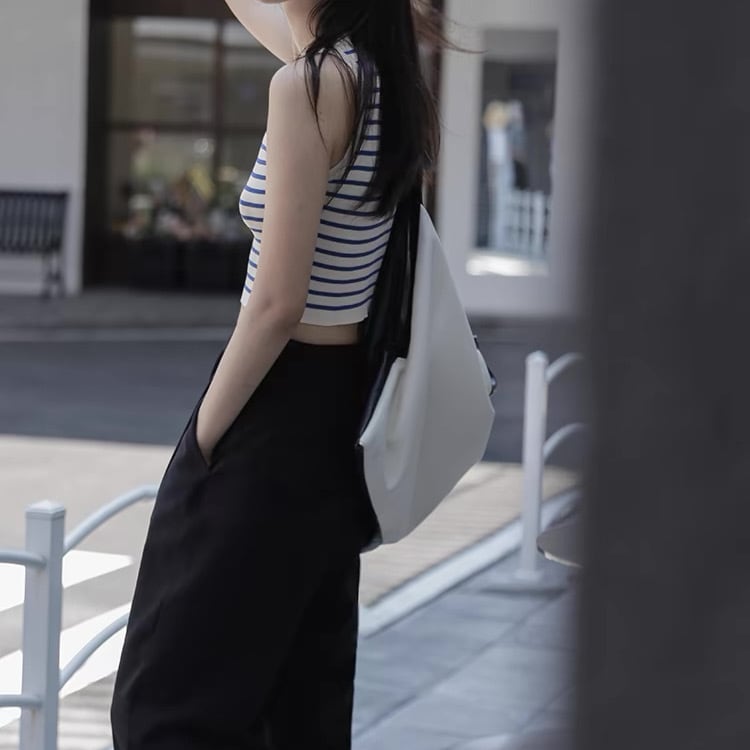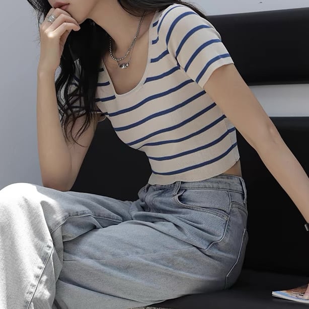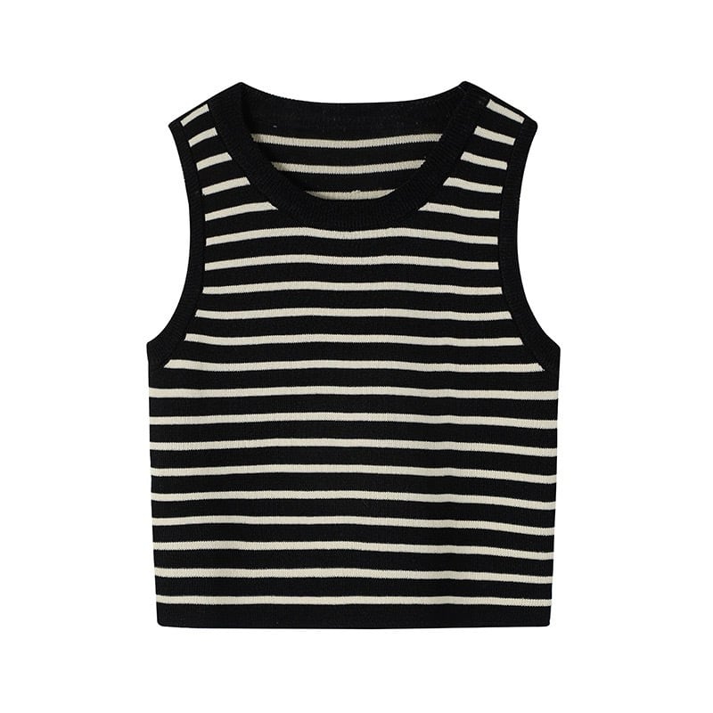 レディース トップス カットソー ニット プルオーバー Tシャツ ショート クロップド丈 袖なし ノースリーブ ラウンドネック タイト スリム 細身 ストレート ストリート スリムフィット 伸縮性 大人可愛い きれいめ シンプル カジュアル 上品 おしゃれ かっこいい こなれ感 クール ボーダー ストライプ 春 夏 学生 学校 通学 デート お出かけ 海 プール 公園 女子会 休日 ショッピング 韓国 オルチャン コーデ 普段使い 着回し トレンド 流行 S M L 黒 ブラック ブルー アプリコット