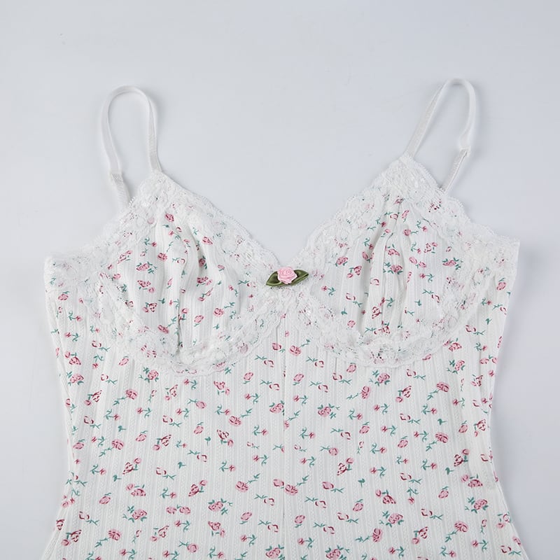 レディースパジャマキャミソールは、大人可愛いデザインが魅力です。Vネックにレースを施したショートタイプで、女性らしいセクシーさも兼ね備えています。花柄の柔らかな色合いが、ロマンティックな雰囲気を演出してくれます。
