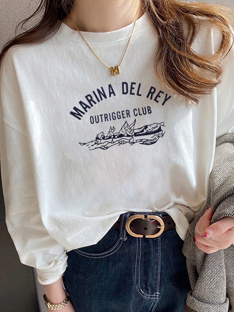 ロゴ プリント ロンT レディース トップス カットソー プルオーバー インナー Tシャツ 丈長 長袖 ラウンドネック 襟なし 綿 コットン かわいい 大人可愛い シンプル カジュアル おしゃれ こなれ感 ルーズ 存在感 英字 春 秋 冬 ロングシーズン ママ 通勤 学生 学校 通学 デート お出かけ 旅行 公園 女子会 休日 ショッピング カフェ 重ね着 韓国 オルチャン 体型カバー 普段使い 着回し レイヤード S M L XL ゆったり 白 ホワイト