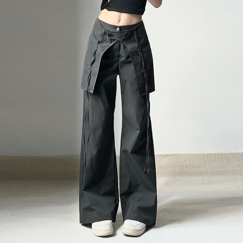 レディース パンツ ボトムス ワークパンツ ワイドパンツ 膝下 ロング フルレングス ワイド ストリート リボン ポケット ハイウエスト かわいい 大人可愛い シンプル カジュアル かっこいい こなれ感 ラフ メンズライク マニッシュ ボーイッシュ スポーティー ルーズ 個性的 アメリカン アクティブ 無地 春 秋 学生 学校 通学 デート お出かけ アウトドア レストラン 公園 女子会 休日 ショッピング ツーリング 韓国 オルチャン 楽ちん 体型カバー 脚長 普段使い 着回し S M L グレー
