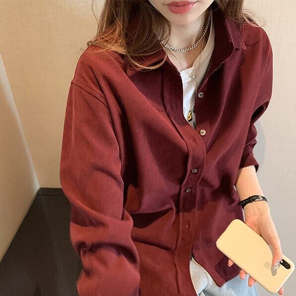 ゆるシルエット アンバランスヘム レディース トップス ブラウス 羽織り 長袖 ドロップショルダー 袖口タック 襟付き 角襟 オーバーサイズ 前開き ボタン コーデュロイ きれいめ シンプル カジュアル 上品 おしゃれ こなれ感 ベーシック 大人っぽい 無地 春 秋 冬 ママ 女の子 OL 通勤 学生 学校 通学 デート お出かけ 旅行 公園 女子会 休日 ショッピング カフェ 重ね着 体型カバー 普段使い 着回し レイヤード S M L XL ゆったり ゆる 大きめ ホワイト グレー カーキ レッド