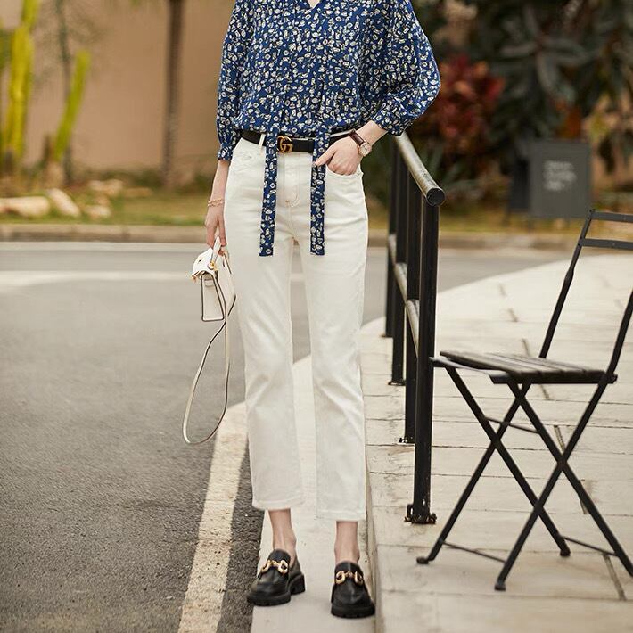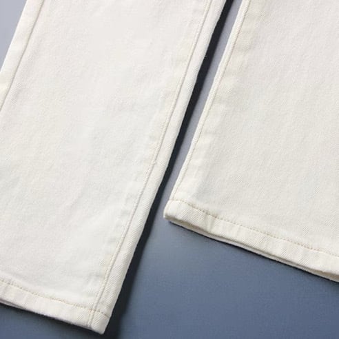 爽やかな印象を与えるホワイトデニムの9分丈ストレートパンツ。