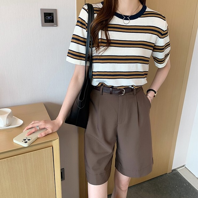 ベルト付き ワンタック ワイドレッグパンツ レディース パンツ ボトムス ショートパンツ ショート 膝上 ワイド ストレート ベルト ウエストマーク ポケット ハイウエスト きれいめ シンプル カジュアル 上品 おしゃれ こなれ感 ボーイッシュ ベーシック 大人 無地 春 夏 ママ 女の子 学生 学校 通学 デート お出かけ リゾート 旅行 ビーチ 女子会 休日 バカンス ショッピング カフェ 体型カバー 脚長 普段使い 着回し S M L XL 2XL 大きいサイズ ブラック ブラウン グレー カーキ