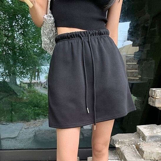 レディース スカート ボトムス ショート丈 Aライン ウエストゴム ポケット ハイウエスト スリム 細身 きれいめ 上品 おしゃれ お洒落 大人可愛い 大人女子 かっこいい シンプル クール モダン スポーティー レトロ 主役級 存在感 こなれ感 抜け感 夏 10代 20代 30代 お出かけ デート 女子会 ショッピング ガーデン お泊まり 旅行 レストラン 普段使い デイリー 韓国 オルチャン 美脚 脚長 ファッション コーデ トレンド 流行 スタイル インスタ映え M L XL グレー ブラック