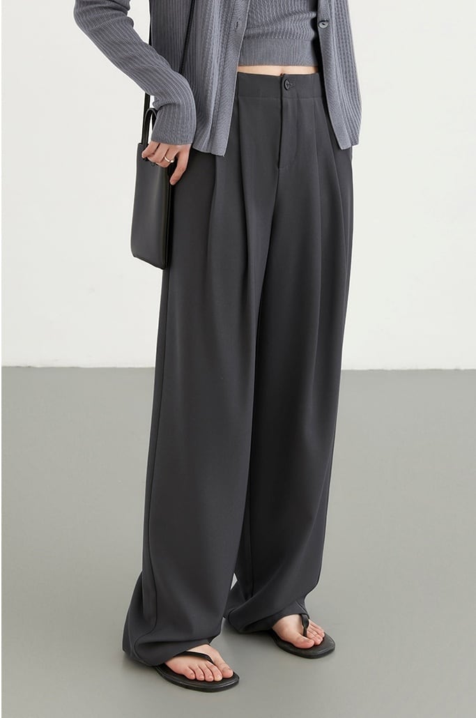 大人のきれいめコーデに欠かせないタック入りワイドスラックス。