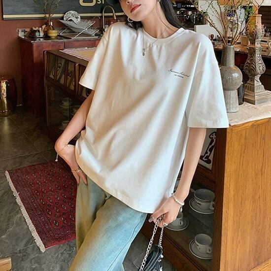 レディース Tシャツ トップス 半袖 ラウンドネック プルオーバー 文字 プリント ルーズ きれいめ 上品 おしゃれ お洒落 大人可愛い 大人女子 かっこいい カジュアル シンプル フェミニン シック クール モダン レトロ 主役級 存在感 こなれ感 抜け感 春 夏 10代 20代 30代 40代 OL 通勤 お出かけ デート 女子会 お泊まり 旅行 ショッピング 休日 普段使い デイリー 韓国 オルチャン 重ね着 ファッション コーデ トレンド 流行 スタイル ワンサイズ ホワイト グレー ブラック