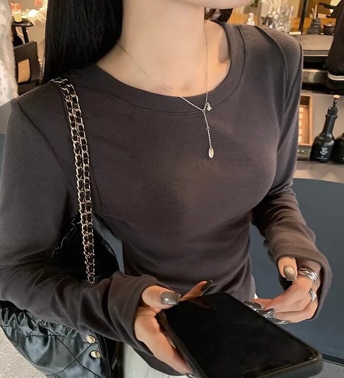 レディース Tシャツ トップス 長袖 ラウンドネック プルオーバー 無地 スリム 細身 きれいめ 上品 おしゃれ お洒落 大人可愛い 大人女子 かっこいい カジュアル シンプル フェミニン シック クール モダン レトロ 主役級 存在感 こなれ感 抜け感 春 秋 10代 20代 30代 40代 OL 通勤 お出かけ デート 女子会 お泊まり 旅行 ショッピング 休日 普段使い デイリー 韓国 オルチャン 重ね着 ファッション コーデ トレンド 流行 スタイル M L ピンク ホワイト グレー ブラック