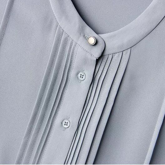 また、丸首でノーカラーのデザインが女性らしい印象を与えます。