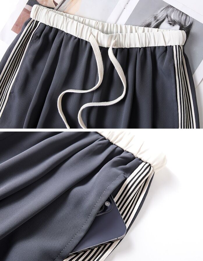 サイドライン ストライプ柄 ハイウエスト ジャージ レディース パンツ ボトムス 部屋着 ロングパンツ ロング ワイド ストレート ポケット ウエストゴム ドロスト バイカラー 薄手 かわいい 大人可愛い シンプル カジュアル おしゃれ かっこいい スポーティー ルーズ ストライプ 春 夏 秋 ママ 学生 学校 通学 部活 デート お出かけ お泊まり リゾート 旅行 ジム 公園 休日 モノトーン 楽ちん 体型カバー 普段使い 着回し S M XL 2XL 大きいサイズ ゆったり 黒 ブラック グレー