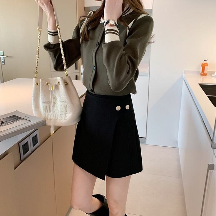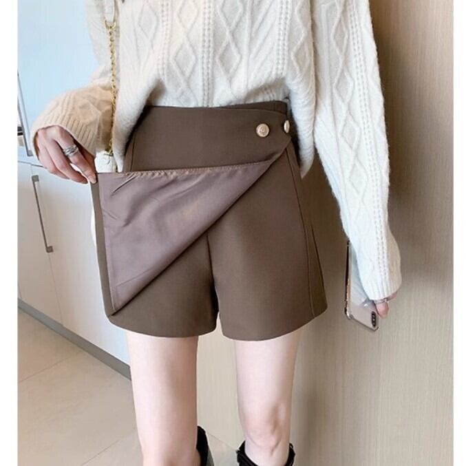 フロントラップデザイン 巻きスカート風 レディース パンツ ボトムス ショートパンツ キュロットスカート ミニ ショート 膝上 Aライン サイドボタン ハイウエスト バックファスナー かわいい 大人可愛い きれいめ シンプル カジュアル 上品 おしゃれ こなれ感 アクティブ スタイリッシュ 足見せ 無地 春 夏 女の子 学生 学校 通学 デート お出かけ 旅行 女子会 休日 韓国 オルチャン コーデ 脚長 普段使い 着回し スタイルアップ S M L XL 2XL 大きいサイズ 黒 ブラック カーキ