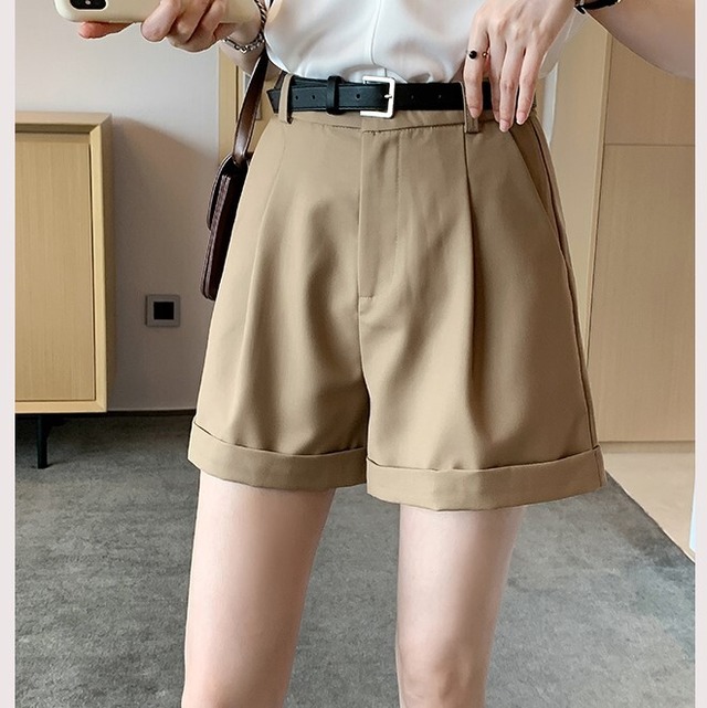 ベルト付き 裾ロールアップデザイン ワイドレッグパンツ レディース パンツ ボトムス ショートパンツ ミニ ショート 膝上 ワイド Aライン タック きれいめ シンプル カジュアル 上品 おしゃれ こなれ感 ボーイッシュ ベーシック アクティブ 無地 春 夏 ママ 女の子 学生 学校 通学 デート お出かけ リゾート 旅行 女子会 休日 バカンス ショッピング カフェ 韓国 オルチャン コーデ 脚長 普段使い 着回し S M L XL 灰色 グレー 白 ホワイト 黒 ブラック ベージュ カーキ 大人カラー