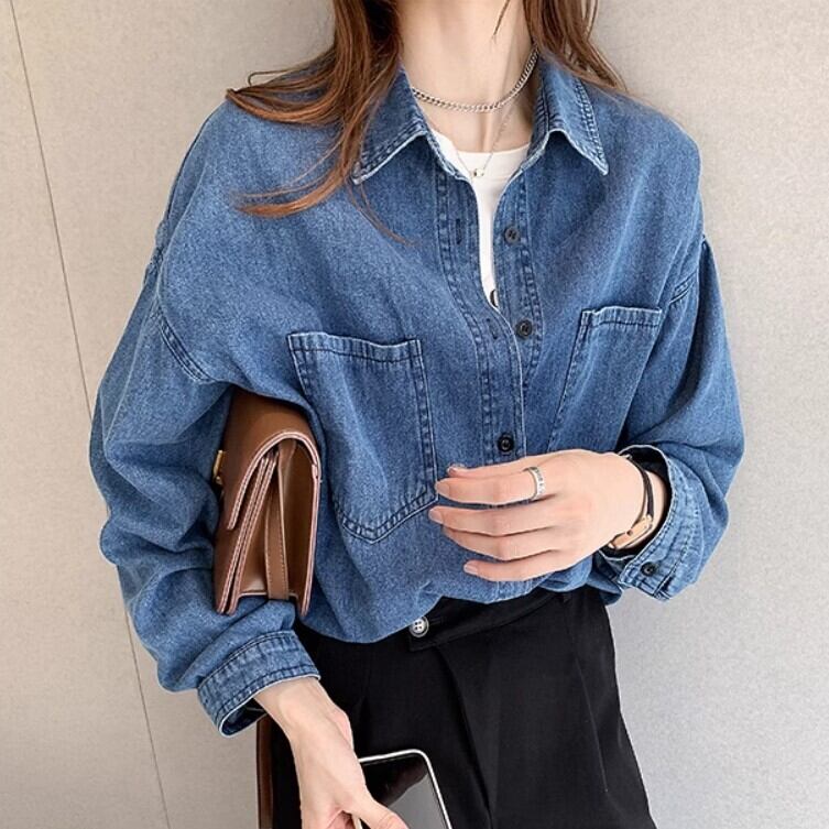 ゆるシルエット レディース トップス ブラウス 羽織り デニムシャツ ミディアム丈 チュニック丈 長袖 ドロップショルダー 襟付き 角襟 オーバーサイズ ポケット 前開き ボタン シンプル カジュアル 上品 おしゃれ レトロ こなれ感 ボーイッシュ ベーシック ナチュラル 無地 春 秋 ママ 女の子 学生 学校 通学 デート お出かけ アウトドア キャンプ 旅行 公園 女子会 休日 ショッピング カフェ 重ね着 体型カバー 普段使い 着回し レイヤード 定番 S M L XL ゆったり ゆる 青 ブルー