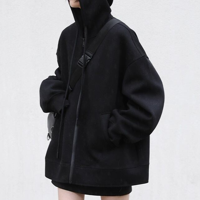 レディース トップス パーカー スウェット ジャージ アウター 上着 羽織 前開き 長袖 萌袖 ラウンドネック 襟なし フード オーバーサイズ フェミニン ファスナー ポケット かわいい 大人可愛い シンプル カジュアル おしゃれ こなれ感 ラフ スポーティー ルーズ 抜け感 カレッジ風 学生風 アクティブ 無地 学生 学校 通学 デート お出かけ アウトドア キャンプ 旅行 ジム 公園 女子会 休日 ショッピング お花見 カフェ 楽ちん 暖かい 防寒 普段使い 着回し S M L ゆったり ゆる