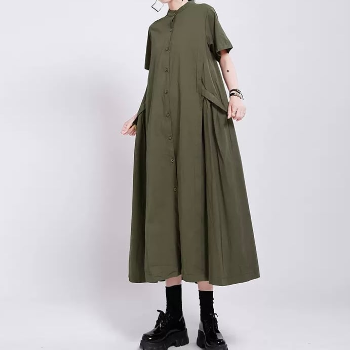 レディース ワンピース ロング丈 半袖 プルオーバー スイング Aライン 無地 ハイウエスト きれいめ 上品 おしゃれ お洒落 大人可愛い 大人女子 かっこいい クール モダン シック フェミニン 主役級 存在感 こなれ感 抜け感 夏 20代 30代 40代 お出かけ デート 女子会 休日 お泊まり 旅行 ショッピング レストラン ガーデン 普段使い デイリー 韓国 韓国系 オルチャン ファッション コーデ トレンド 流行 美脚 脚長 インスタ映え モテ ワンサイズ 緑 グリーン カーキ 黒 ブラック