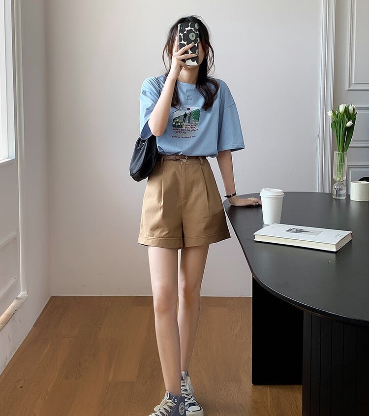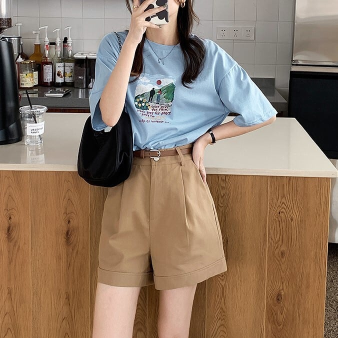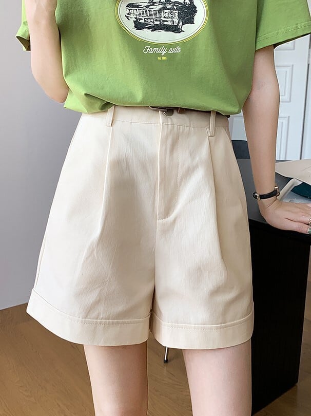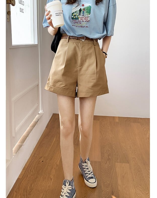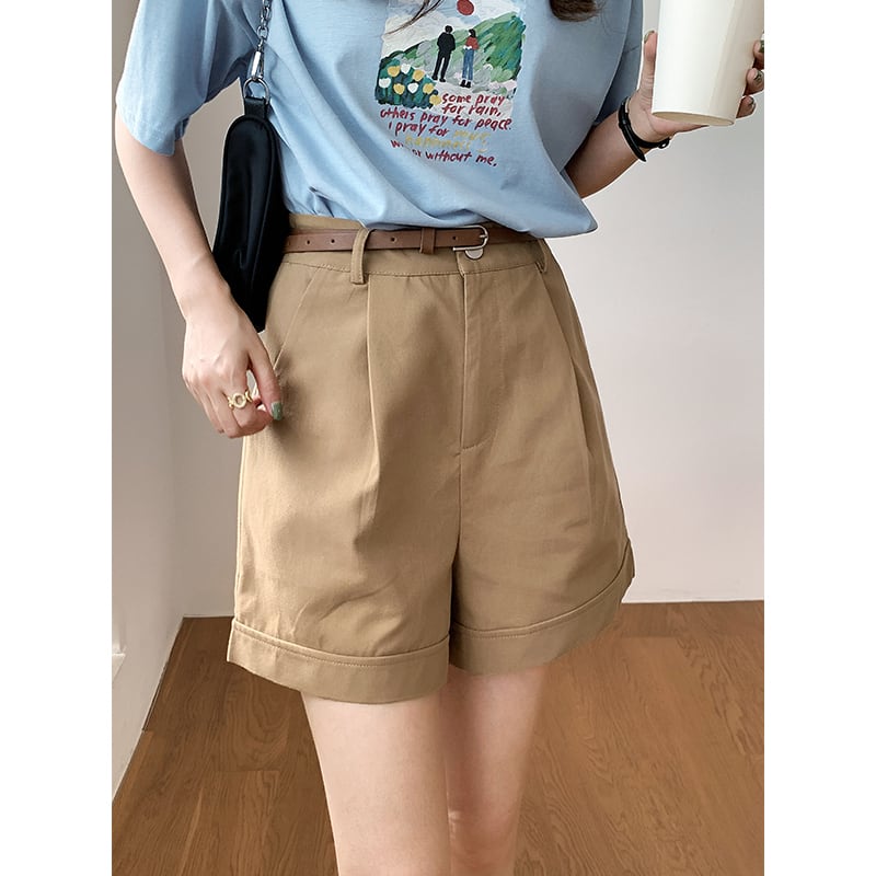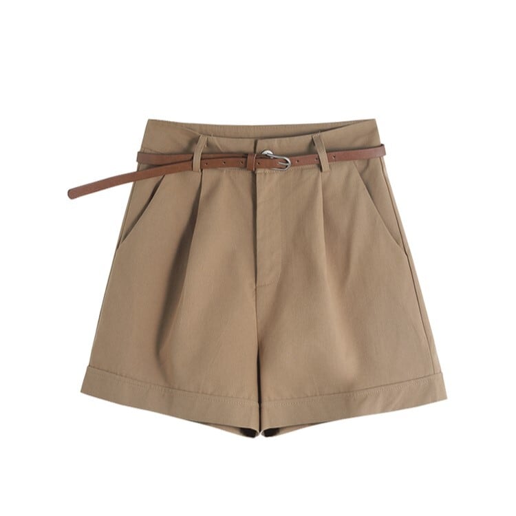 細ベルト付き ワンタック ワイドレッグパンツ レディース パンツ ボトムス ショートパンツ ミニ ショート 膝上 Aライン ベルト ウエストマーク ファスナー ポケット ハイウエスト きれいめ シンプル カジュアル 上品 おしゃれ こなれ感 ボーイッシュ ベーシック 無地 春 夏 女の子 学生 学校 通学 デート お出かけ リゾート 旅行 女子会 休日 バカンス 高原 ショッピング フェス 韓国 オルチャン コーデ 脚長 普段使い 着回し S M L XL 黒 ブラック ベージュ カーキ 大人カラー