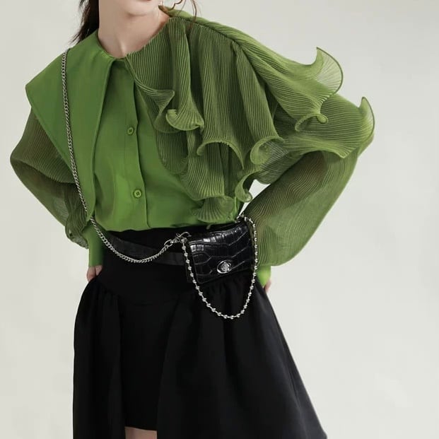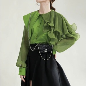 レディース シャツ トップス 長袖 パフスリーブ フリル 透け感 ベルト付き ボタン 前開き ルーズ きれいめ 上品 おしゃれ お洒落 大人可愛い 大人女子 かっこいい カジュアル 個性的 フェミニン シック クール モダン レトロ 主役級 存在感 こなれ感 抜け感 秋 10代 20代 30代 OL 通勤 お出かけ デート 女子会 お泊まり 旅行 ショッピング レストラン 普段使い 韓国 オルチャン ファッション コーデ トレンド 流行 インスタ映え スタイル S M L ホワイト グリーン ブラック