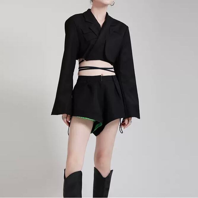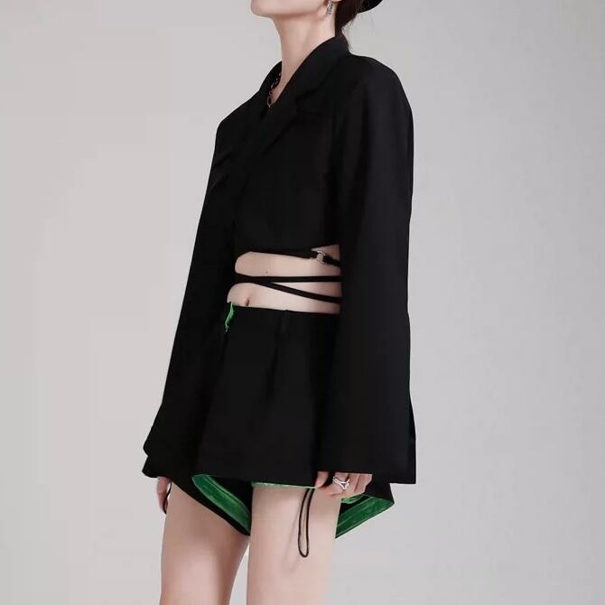 レディース ジャケット トップス 長袖 ショート丈 スーツジャケット ウエストストラップ 前開き スリム 細身 きれいめ 上品 おしゃれ お洒落 大人可愛い 大人女子 かっこいい カジュアル 個性的 フェミニン シック クール モダン レトロ 主役級 存在感 こなれ感 抜け感 春 20代 30代 お出かけ デート 女子会 お泊まり 旅行 ショッピング レストラン 普段使い デイリー 韓国 韓国系 オルチャン ファッション コーデ トレンド 流行 インスタ映え スタイルアップ S M L 黒 ブラック