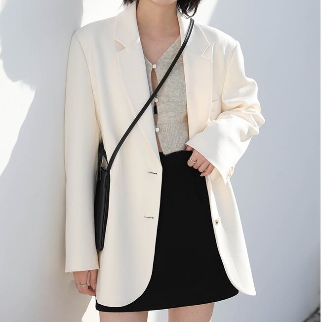 お手持ちのアイテムに一気にクールなムードをプラスするジャケット。オーバーサイズでルーズなシルエットは、今年らしくスタイリッシュな着こなしを叶えます。Vネックラインと襟付き、ポケット付きで機能性もバッチリ。中厚手の素材は秋口に最適で、オフィスやデートなど幅広いシーンで活躍します。