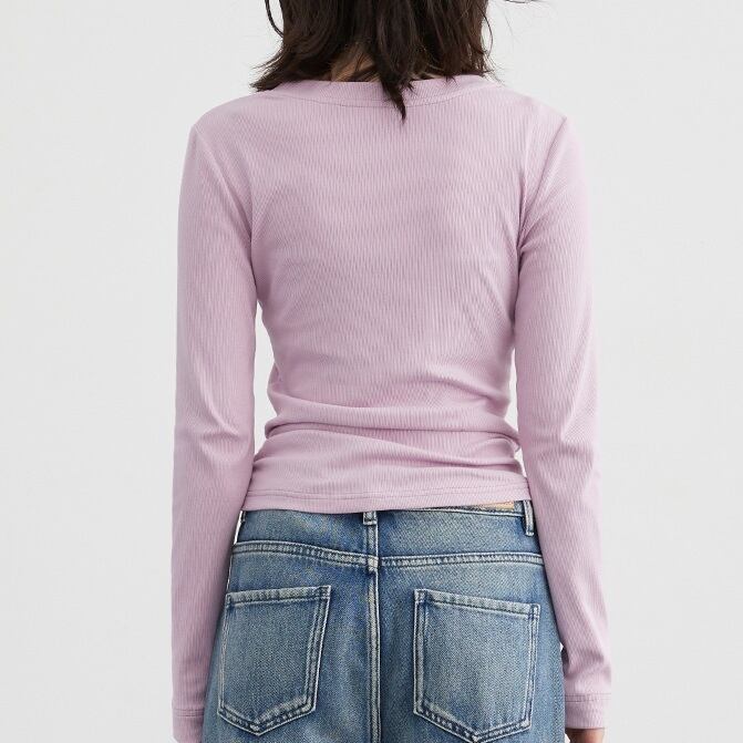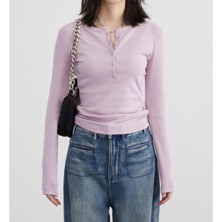 レディース トップス カットソー 長袖 ラウンドネック タイト スリム 細身 フェミニン リブ ボタン ギャザー ストレッチ 伸縮性 かわいい 大人可愛い きれいめ シンプル カジュアル おしゃれ こなれ感 モード系 都会的 クラシカル ナチュラル 無地 春 夏 オフィス ビジネス OL 通勤 学生 学校 通学 デート お出かけ レストラン 女子会 休日 ショッピング お花見 合コン カフェ 楽ちん 普段使い 着回し S M L 黒 ブラック 紫 ベーシックカラー 大人カラー 春カラー パープル