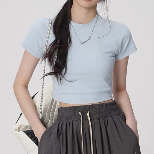レディース トップス インナー Tシャツ ショート クロップド丈 半袖 モックネック タイト スリム 細身 ストリート 伸縮性 アメカジ シンプル カジュアル おしゃれ かっこいい ラフ ボーイッシュ スポーティー 個性的 クール ベーシック アメリカン アクティブ 無地 春 夏 大学生 デート お出かけ アウトドア 海 プール ビーチ 公園 女子会 休日 ショッピング ライブ フェス 韓国 コーデ 普段使い 着回し トレンド 流行 S M L ライトグレー ダークグレー ブルー レッド ネイビーブルー