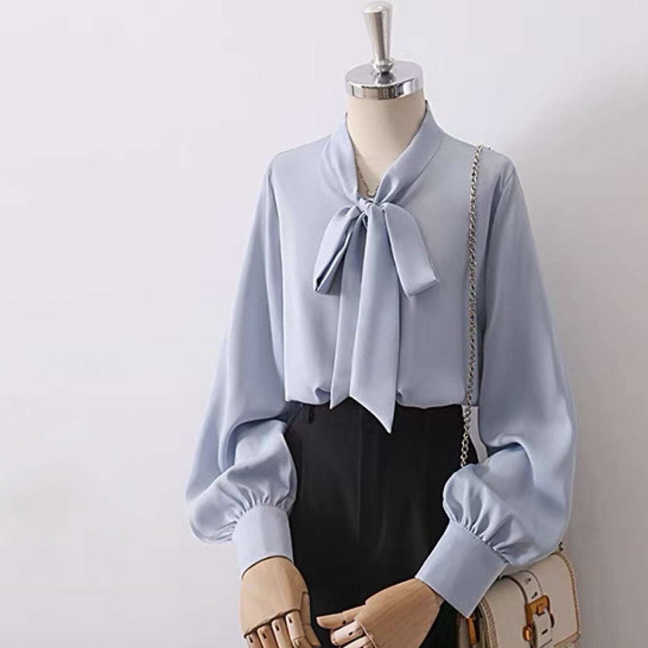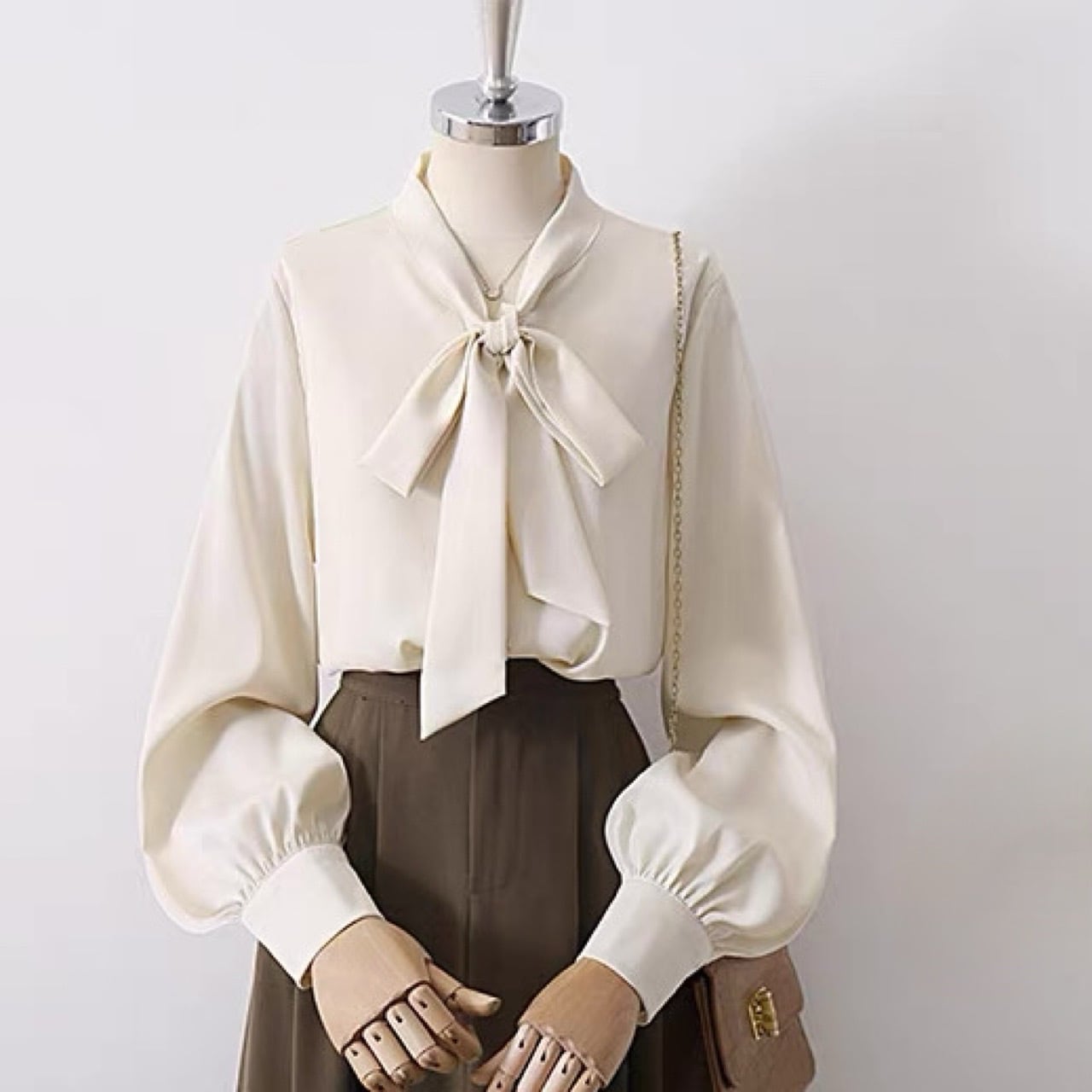 レトロクラシカルな雰囲気漂うボウタイブラウスシャツ。
