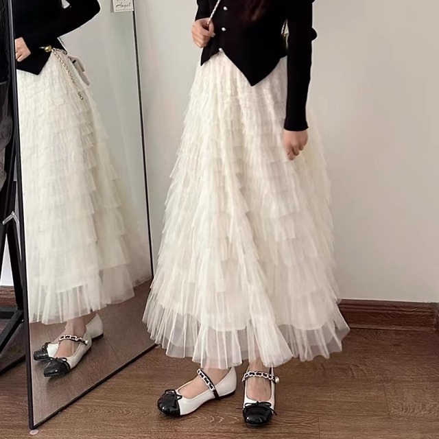 フェアリーのようなロマンティックな雰囲気を漂わせる、ティアードスカート。