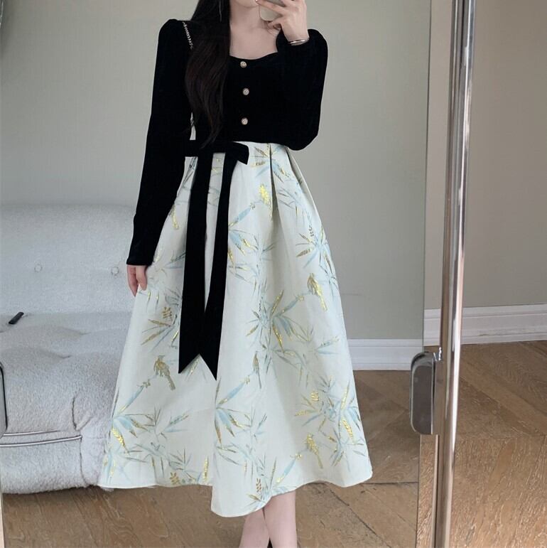 レディース ワンピース ロング 長袖 スクエアネック Aライン ハイウエスト 大人可愛い きれいめ シンプル おしゃれ かっこいい ガーリー クール 都会的 ナチュラル 花柄 秋 通勤 デート お出かけ お泊まり イベント 旅行 レストラン 公園 女子会 休日 ホテル ショッピング コンサート ライブ お花見 カフェ フェス お揃い 韓国 コーデ 楽ちん プレゼント 美脚 脚長 普段使い モテ 清楚 インスタ映え M L XL 2XL 3XL 4XL 大きいサイズ ブラック