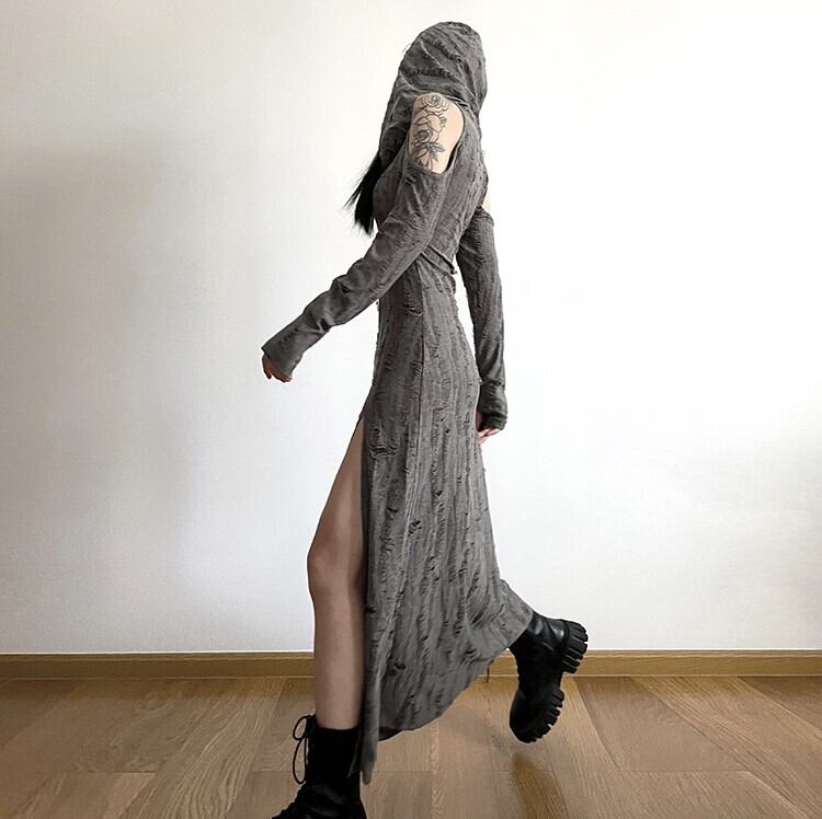 ドレス ワンピース パーティー 二次会 ステージ 舞台 フォーマル キャバ 衣装 演劇 ラウンジ クラブ ロング 長袖 オフショル スリット きれいめ シンプル 大人可愛い おしゃれ かっこいい クール モード エレガント セクシー 無地 旅行 ホテル レストラン 韓国 二の腕カバー 美脚 女子会 春 夏 S M L ライトグレー