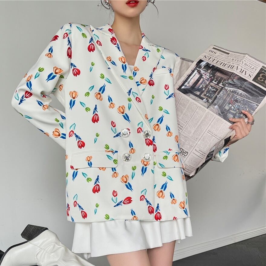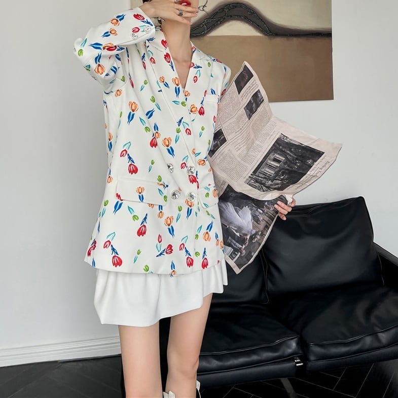 フェミニンで可愛らしい花柄のジャケットは、あなたのコーディネートを一気に華やかに演出します。Vネックのデザインが女性らしさを引き立て、前開きで着脱も簡単。シルエットはルーズで着心地も抜群です。大人可愛い雰囲気で、オフィスやデート、休日のお出かけまで幅広く活躍します。