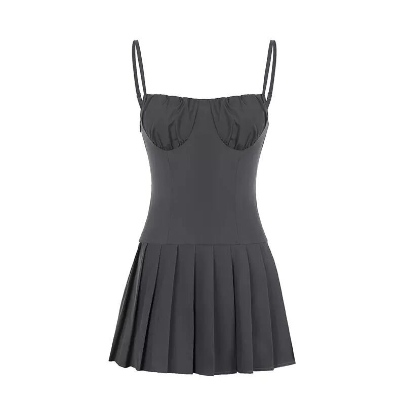 ワンピース キャミソール ドレス ミニ レディース 袖なし ノースリーブ 襟なし タイト スリム 細身 Aライン 背中開き 裾ワイド フェミニン プリーツ ハイウエスト かわいい 大人可愛い きれいめ シンプル おしゃれ ラフ ガーリー 主役級 存在感 ラブリー キュート 都会的 無地 春 夏 二次会 デート お出かけ お泊まり パーティー イベント リゾート 旅行 休日 バカンス ショッピング 発表会 楽ちん 美脚 脚長 モテ インスタ映え S M L グレー ピンク 大人カラー 春カラー