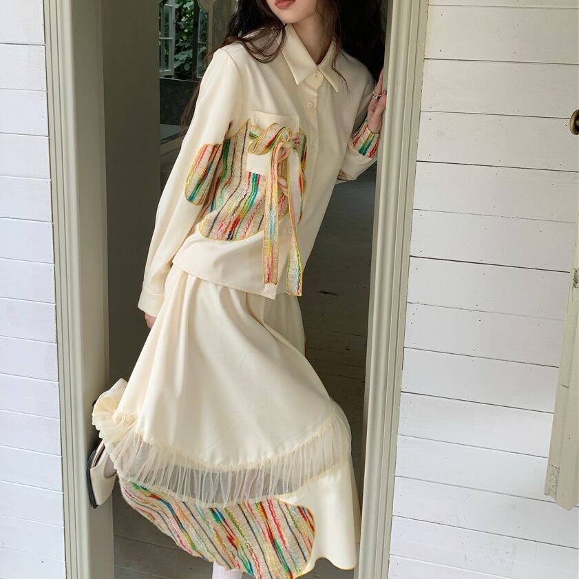 レディース トップス シャツ 長袖 ラウンドネック 襟付き ポロカラー フェミニン リボン ポケット 前開き ボタン かわいい 大人可愛い カジュアル おしゃれ レトロ こなれ感 ラフ ルーズ 個性的 主役級 存在感 クラシカル アメリカン ストライプ 春 ママ 学生 学校 通学 デート お出かけ アウトドア レストラン 公園 女子会 休日 ショッピング お花見 合コン コンパ カフェ 重ね着 韓国 オルチャン コーデ 楽ちん 体型カバー 普段使い 着回し インスタ映え S M ゆったり ゆる ベージュ