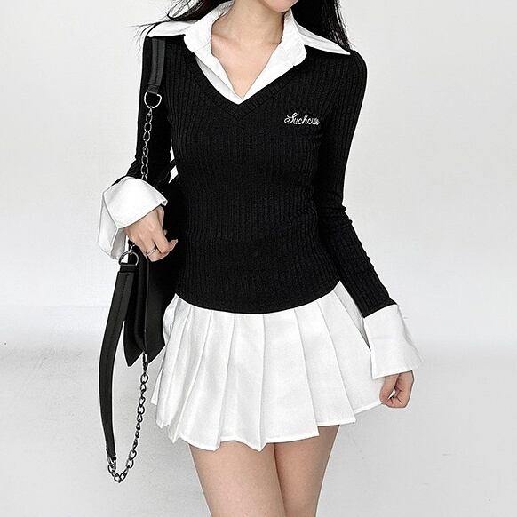 フェイクツーピースデザインで、まるで2枚着ているようなおしゃれ感を演出します。