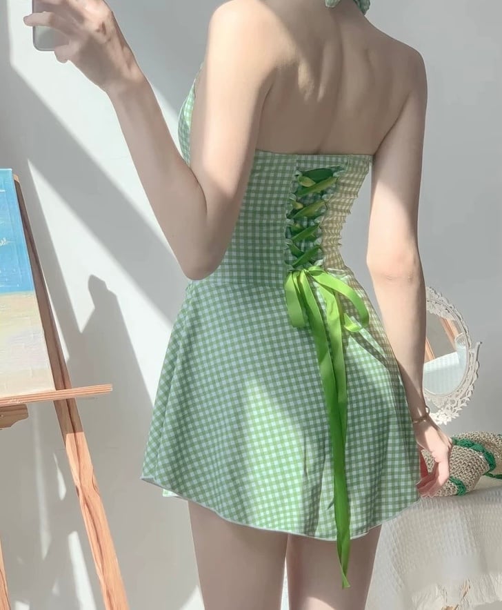 ホルターネックのデザインが魅力的なワンピース水着です。胸元の谷間を魅せるカッティングやハイウエストで美脚効果抜群!タイダイ柄とバックリボンが、おしゃれでキュートな雰囲気を演出します。