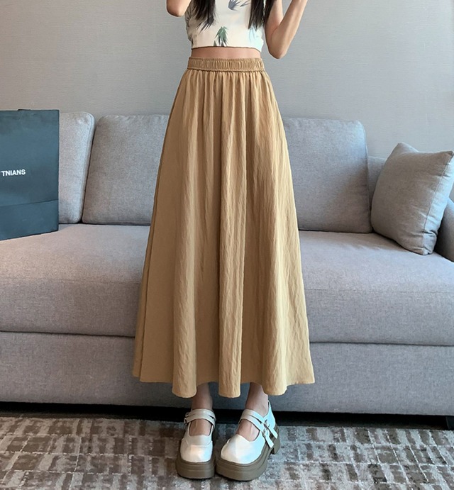 ウエストゴム Aライン スカート レディース ボトムス ロングスカート ロング マキシ アンクル丈 フレア ドレープ ハイウエスト かわいい 大人可愛い シンプル カジュアル おしゃれ ルーズ 無地 春 夏 秋 ママ 通勤 学生 学校 通学 デート お出かけ 旅行 公園 女子会 休日 ショッピング カフェ 楽ちん 体型カバー 脚長 普段使い 着回し S M L XL ゆったり 黒 ブラック ダークグレー ベージュ カーキ アプリコットグリーン