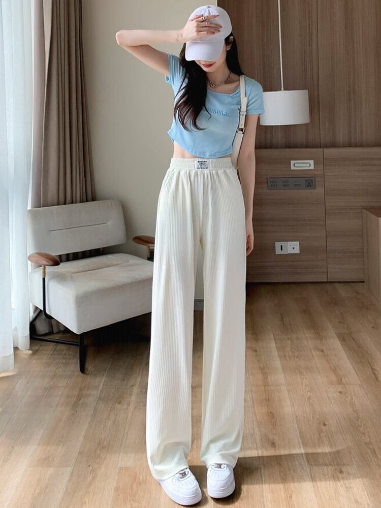 ウエストゴム クールパンツ レディース パンツ ボトムス ロングパンツ ワイドパンツ ロング 9分丈 ワイド ストレート ハイウエスト リブ 伸縮性 かわいい 大人可愛い シンプル カジュアル おしゃれ こなれ感 ラフ ルーズ ストライプ ロゴ 春 夏 ママ 通勤 学生 学校 通学 デート お出かけ お泊まり リゾート 旅行 公園 休日 楽ちん 体型カバー 脚長 普段使い 着回し S M L XL 2XL 大きいサイズ ゆったり 黒 ブラック オフホワイト ピンク ミントグリーン