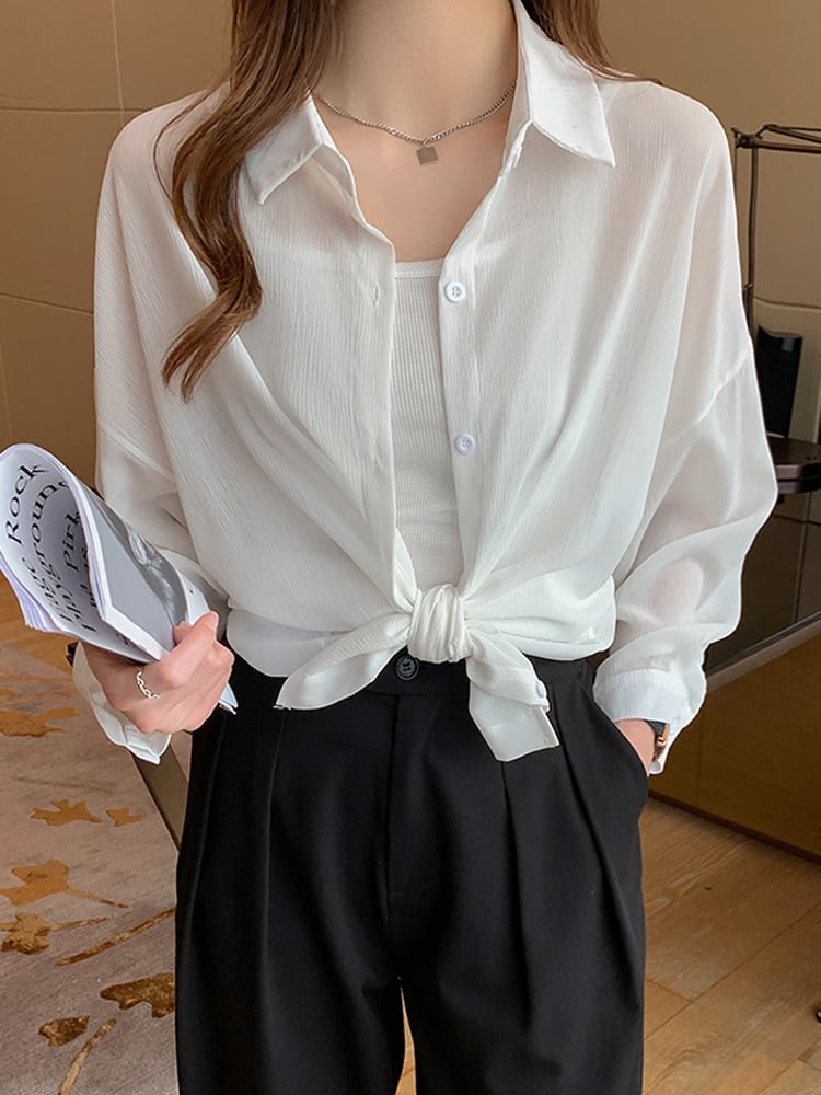 春夏にぴったりの透け感が魅力的な長袖ルーズシアーシャツブラウス。ドロップショルダーやポロカラー、前開きなどデザインもおしゃれで、大人可愛い着こなしを叶えてくれます。シースルーなので軽やかな着心地で、体型カバーもしっかりと。通勤やデート、休日のお出かけまで幅広く活躍してくれるアイテムです。さまざまなシーンで着回ししやすく、重ね着のレイヤードスタイルもおすすめです。春らしい淡めカラーのシャンパンやパープルなど、豊富なカラーバリエーションからお気に入りを選んでみてください。