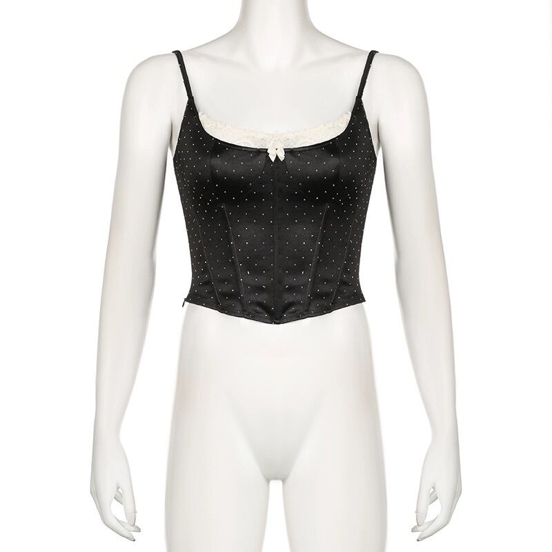 レディース キャミソール トップス ノースリーブ ストラップ レース リボン ドット柄 スリム 細身 きれいめ 上品 おしゃれ お洒落 シンプル 大人可愛い 大人女子 かっこいい セクシー クール モダン エレガント フェミニン レトロ 主役級 存在感 こなれ感 抜け感 春 10代 20代 30代 お出かけ デート 女子会 お泊まり 旅行 レストラン 休日 普段使い デイリー 韓国 韓国系 オルチャン ファッション コーデ トレンド 流行 スタイル スタイルアップ インスタ映え S M L ブラック