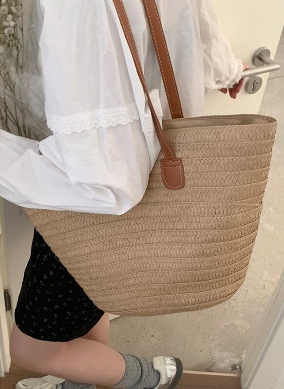 大容量で使い勝手抜群のレザーハンドルのかごバッグが登場しました!しっかりとしたレザーハンドルが上品な印象を与え、スクエアのシルエットが存在感を演出します。ストロー編みで仕上げられたカゴバッグは、夏の装いにぴったりなアイテムです。