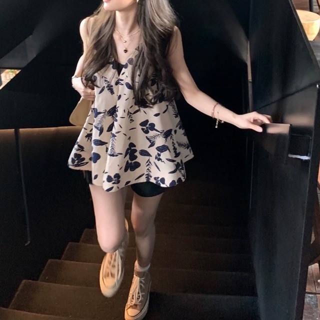 レディース カットソー トップス ノースリーブ サスペンダー Vネック 花柄 ルーズ きれいめ 可愛い 上品 おしゃれ お洒落 大人可愛い シンプル 大人女子 かっこいい クール モダン フェミニン レトロ 主役級 存在感 こなれ感 抜け感 夏 10代 20代 30代 お出かけ デート 女子会 お泊まり ショッピング ガーデン 旅行 レストラン 休日 普段使い デイリー 韓国 韓国系 オルチャン ファッション コーデ トレンド 流行 スタイルアップ スタイル インスタ映え M L XL 2XL ホワイト