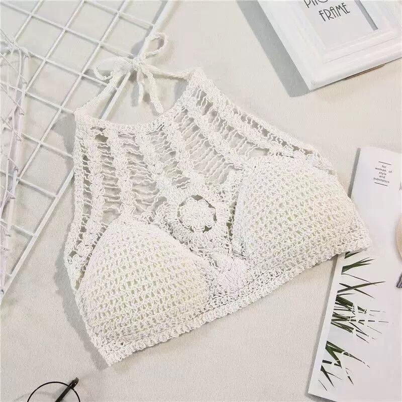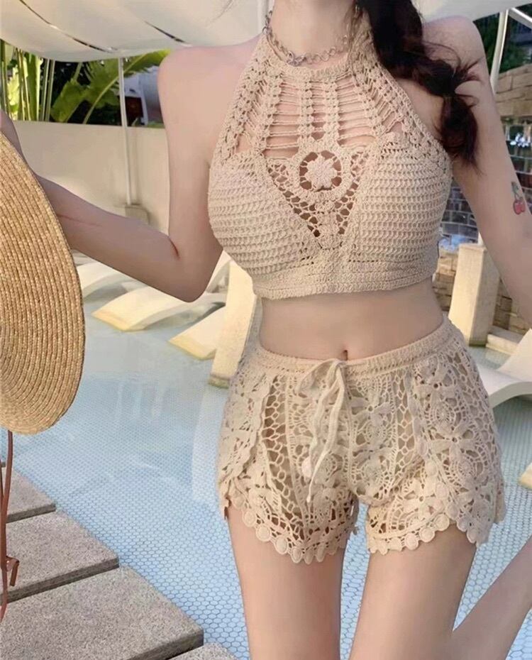 華やかなレースデザインがキュートなニットキャミソール。ノースリーブ&ホルターネックのスリムなシルエットで、大人可愛いスタイリングを演出します。ショート丈で足長効果も◎。夏のお出かけやデート、女子会など様々なシーンで活躍すること間違いなしのアイテムです。