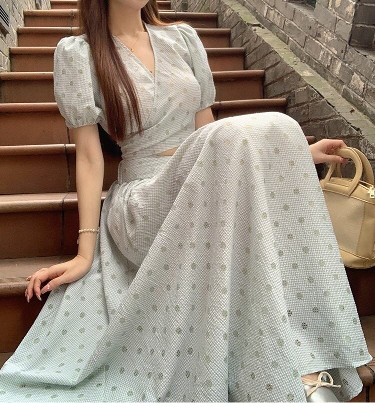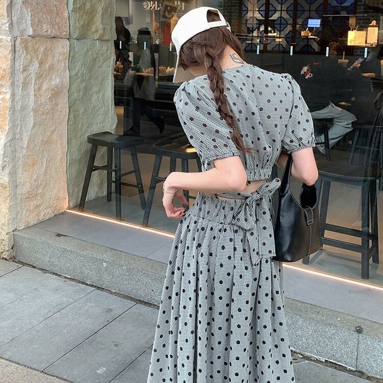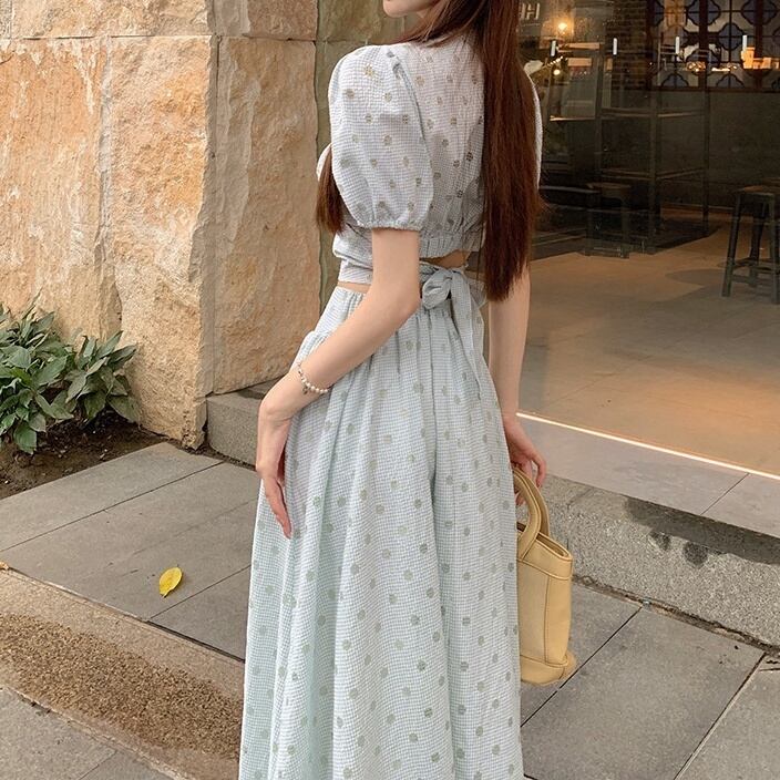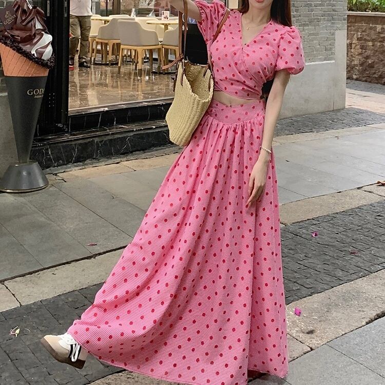 スカート トップス ドレス フレアスカート レディース ロングスカート ツーピーストップス ショート 半袖 Vネック タイト スリム 細身 Aライン フェミニン バックリボン ハイウエスト 薄手 かわいい 大人可愛い カジュアル おしゃれ レトロ ラフ ガーリー 個性的 存在感 ラブリー キュート ロマンティック セクシー ドット柄 水玉 デート お出かけ パーティー イベント リゾート 旅行 公園 休日 バカンス ショッピング カフェ 普段使い 着回し S M L 黒 ブラック レッド 緑 グリーン