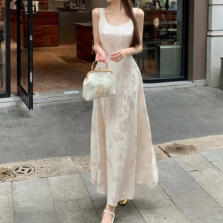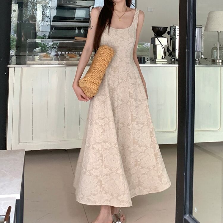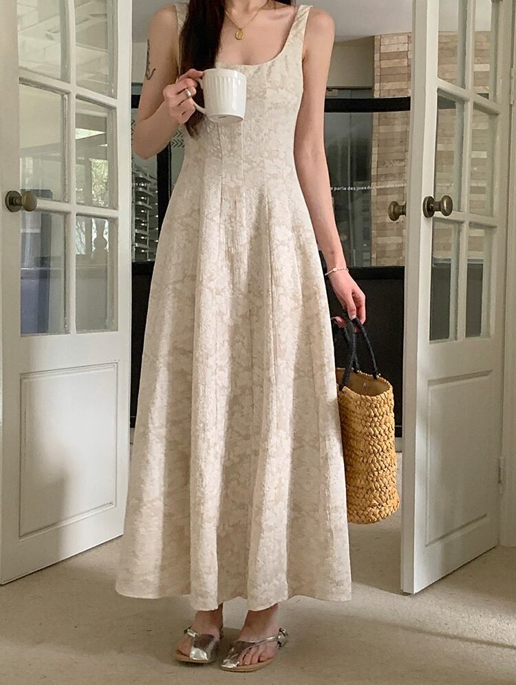 ワンピース フレア ドレス ロング レディース 袖なし ノースリーブ Uネック ラウンドネック タイト スリム 細身 Aライン フェミニン かわいい 大人可愛い きれいめ シンプル カジュアル 上品 おしゃれ レトロ こなれ感 ガーリー 個性的 モード系 エレガント モダン 存在感 キュート ロマンティック ナチュラル 花柄 フラワー デート お出かけ パーティー イベント リゾート 旅行 女子会 休日 バカンス ショッピング 楽ちん 美脚 脚長 清楚 S M L 白 ホワイト 黒 ブラック ベージュ