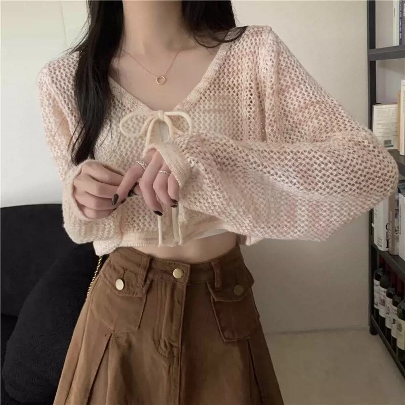 レディース カーディガン トップス ニットカーディガン ショート丈 長袖 Vネック 日焼け止め リボン 前開き ルーズ きれいめ 上品 おしゃれ お洒落 大人可愛い 大人女子 かっこいい カジュアル フェミニン キュート ラブリー レトロ 主役級 存在感 こなれ感 抜け感 夏 10代 20代 30代 お出かけ デート 女子会 お泊まり 旅行 ショッピング レストラン 普段使い 韓国系 オルチャン ファッション コーデ トレンド インスタ映え スタイル S M L ピンク アプリコット ブルー ホワイト