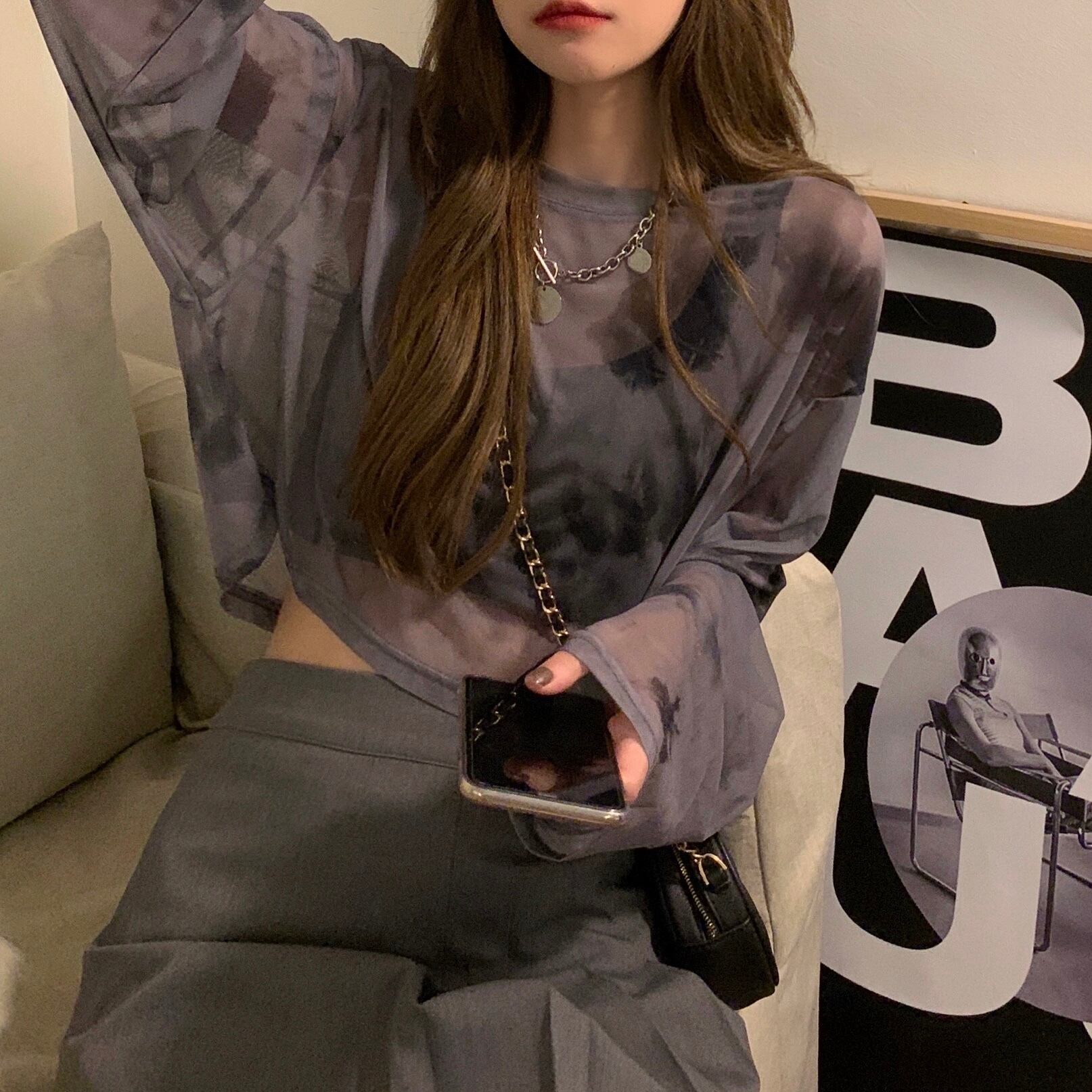 レディース カットソー トップス 長袖 ショート丈 ラウンドネック メッシュ 透け感 薄手 ルーズ きれいめ 可愛い 上品 おしゃれ お洒落 大人可愛い シンプル 大人女子 かっこいい クール モダン フェミニン レトロ 主役級 存在感 こなれ感 抜け感 夏 10代 20代 30代 お出かけ デート 女子会 お泊まり ショッピング ガーデン 旅行 レストラン 普段使い デイリー 韓国 重ね着 オルチャン ファッション コーデ トレンド 流行 スタイル スタイルアップ インスタ映え M L XL グレー