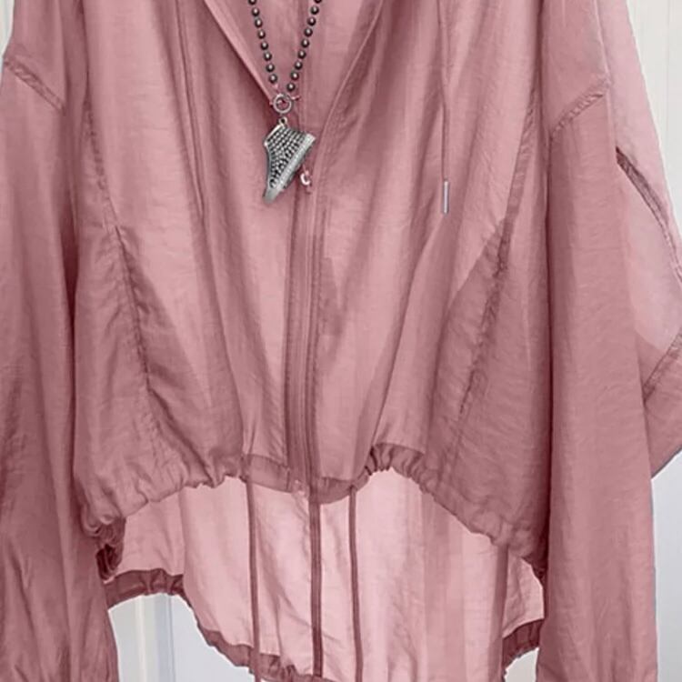 日焼け止め効果もあるカーディガンジャケット。軽やかな素材で透け感のあるデザインが夏らしさを引き立てます。フード付きで、日中の紫外線からもしっかり守ってくれるので、外出時の心強い味方。ジッパー方式の前開きでさっと羽織れるのも便利です。ルーズなシルエットが、カジュアルからきれいめまで、様々なスタイリングに映えるアイテムです。